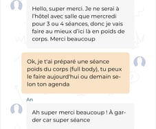 Accède à des entraînements détaillés avec des vidéos explicatives sur notre application exclusive. Des questions ou besoin de modifications ? Nous sommes à une vidéo de distance.